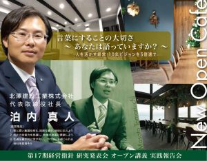 経営指針の成文化を目指す「経営指針研究会」では、成文化した経営指針をもとに経営戦略・経営計画を策定し常に経営指針の実践に取り組む会員から学ぶオープン講義を開催します。経営指針を学び、実際に活用する中でどんなことが起きたの […]